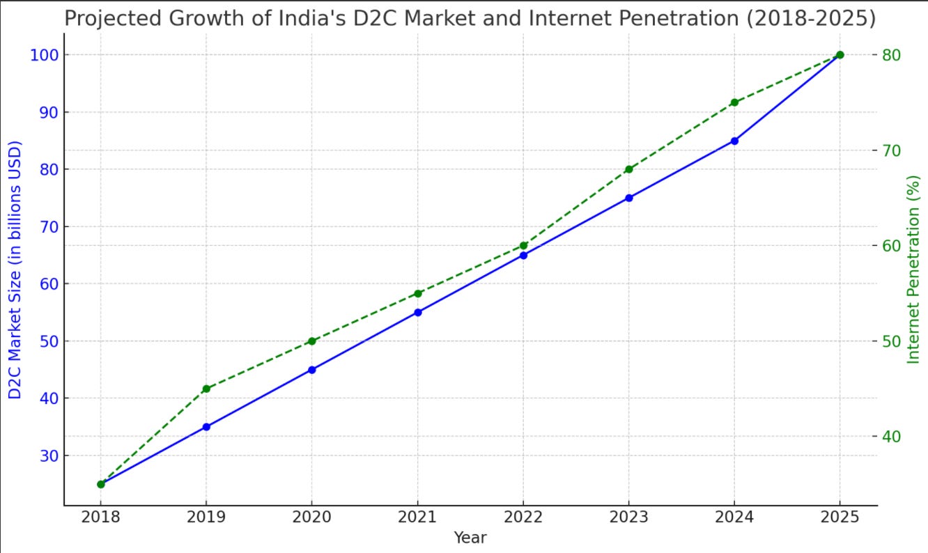 This shift in consumer behavior—from practicality to premiumization —reflects a larger transformation in India’s consumption patterns. Fifty years ago, convenience ruled; today, it’s all about personalization and experience. Added by increased spending power and a growing economy. This is what encapsulates the $100B market size.This evolution helps explain why D2C is such a compelling space in India today, with consumers ready to embrace brands that offer something deeper than just a product. This makes one understand what we mean when we say a $100B market size on consumer spending on D2C.