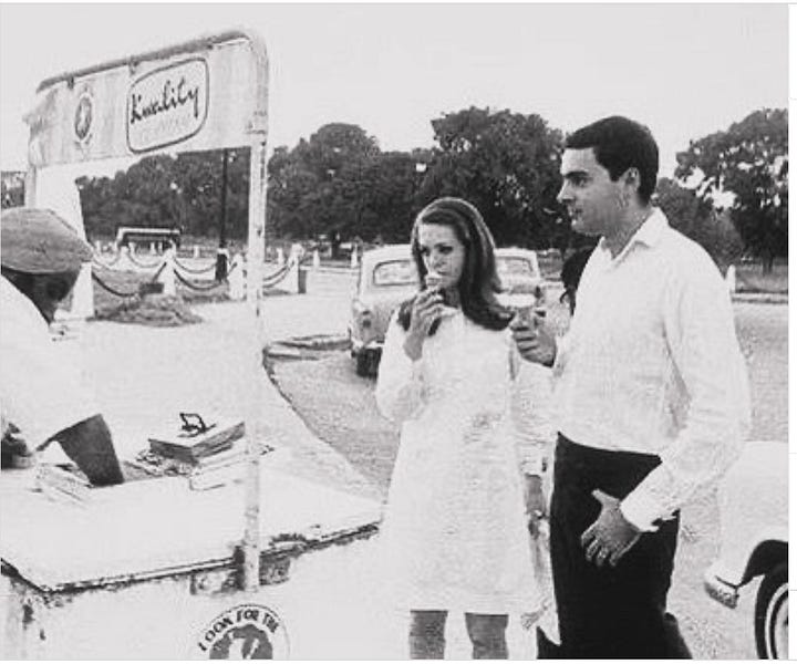 The first image I’m sharing is from the early 1970s, showing Rajiv and Sonia Gandhi enjoying ice cream from a street vendor. The photo credit goes to Baldev Kapoor, who has chronicled India’s history for more than five decades. It’s a nostalgic snapshot from an era when choices were simple, and consumption was driven by availability. Ice cream wasn’t a status symbol; it was an affordable treat tied to local tastes and traditions.
